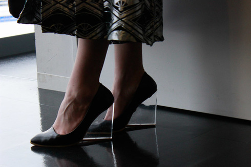 “隐形”鞋跟巧妙的使身高增加,十分有个性。